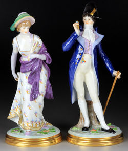 古マイセン 高額ペア人形 フィギュア フィギュリン ユーゲントシュテール名作 ナ